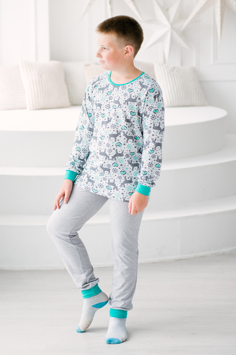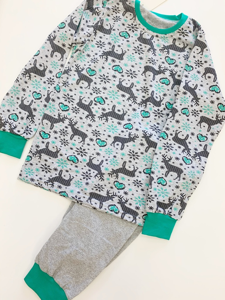 Пижама подростковая из джемпера и брюк из кулирки Олененок ментол