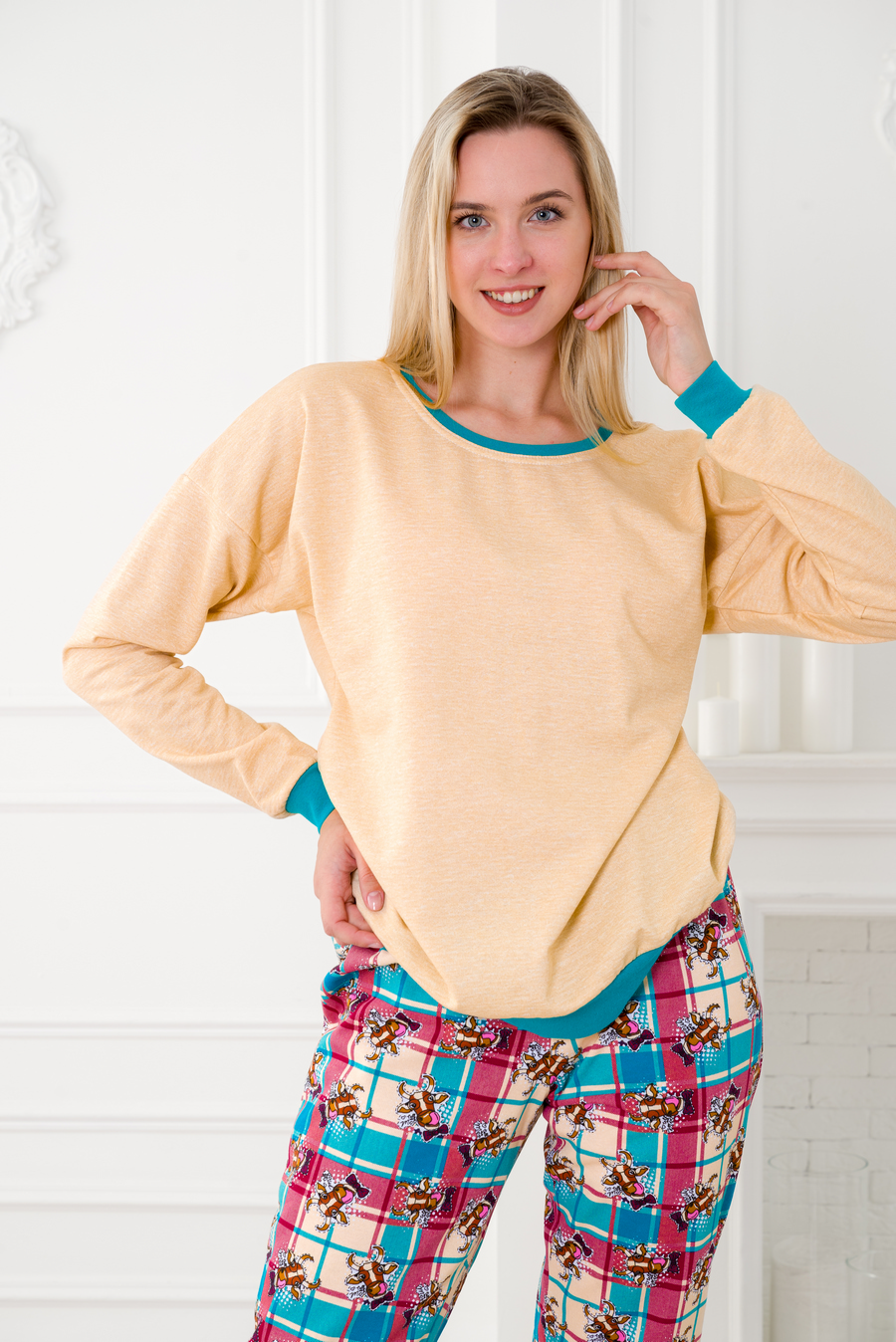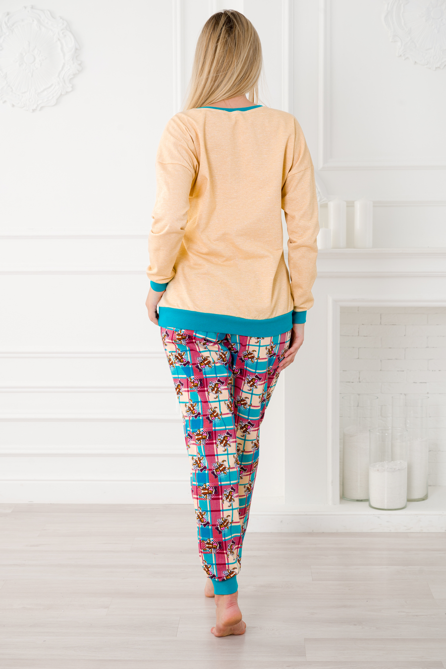 Пижама женская из джемпера и брюк из футера Олененок клетка корова