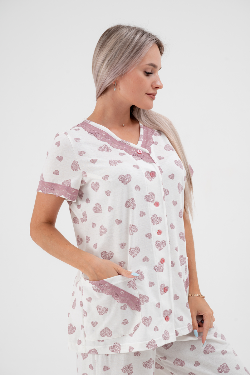 Пижама женская из кулирки Ворожея сердечко кофейное макс