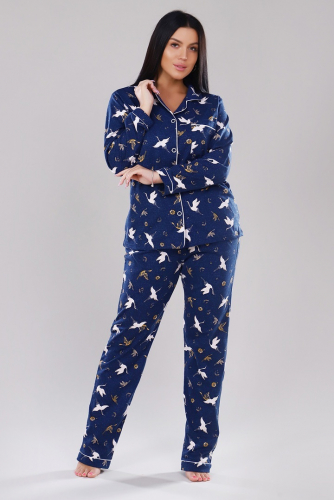 Пижамный костюм с брюками - Журавли - 907 - т. синий