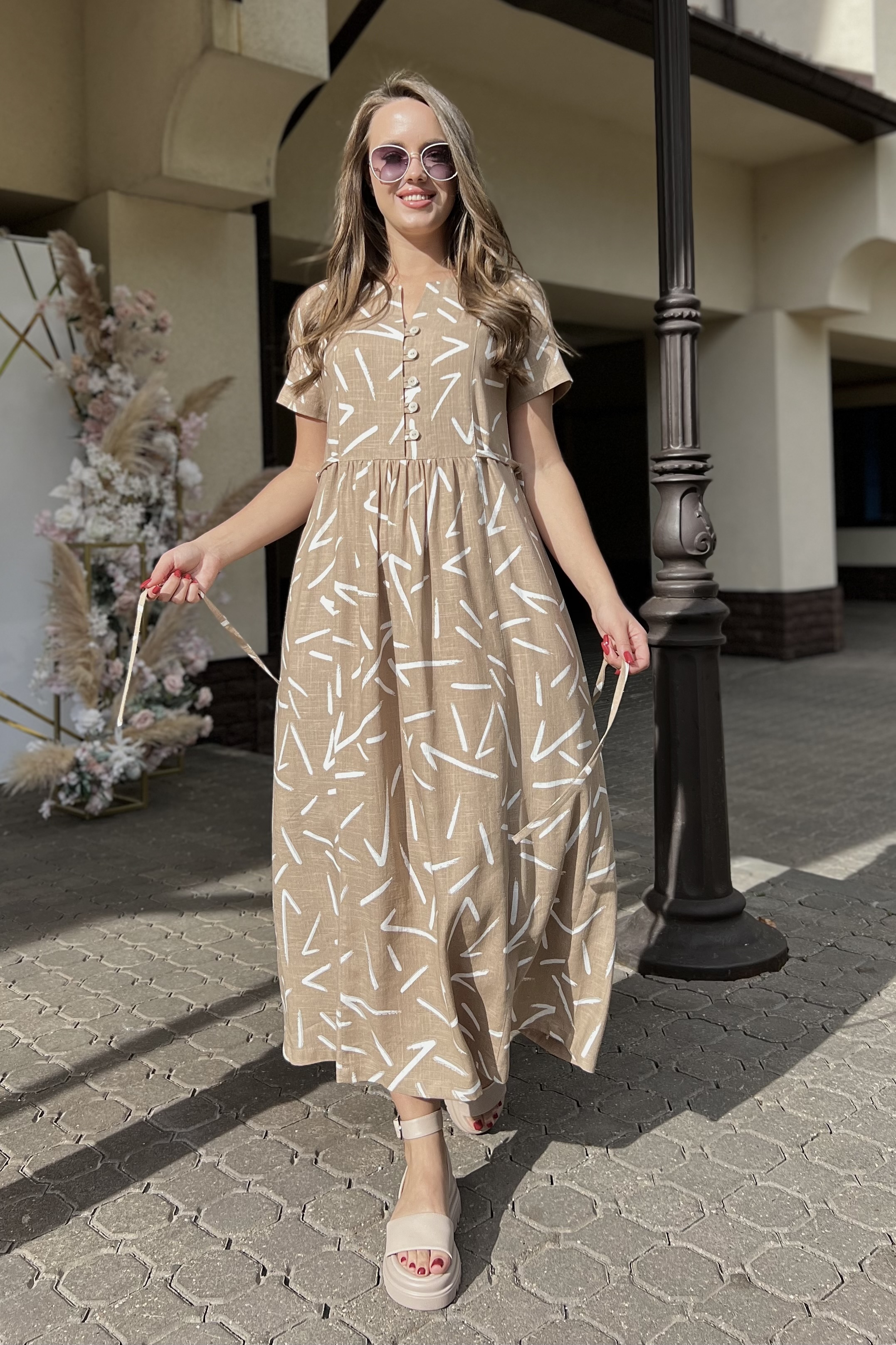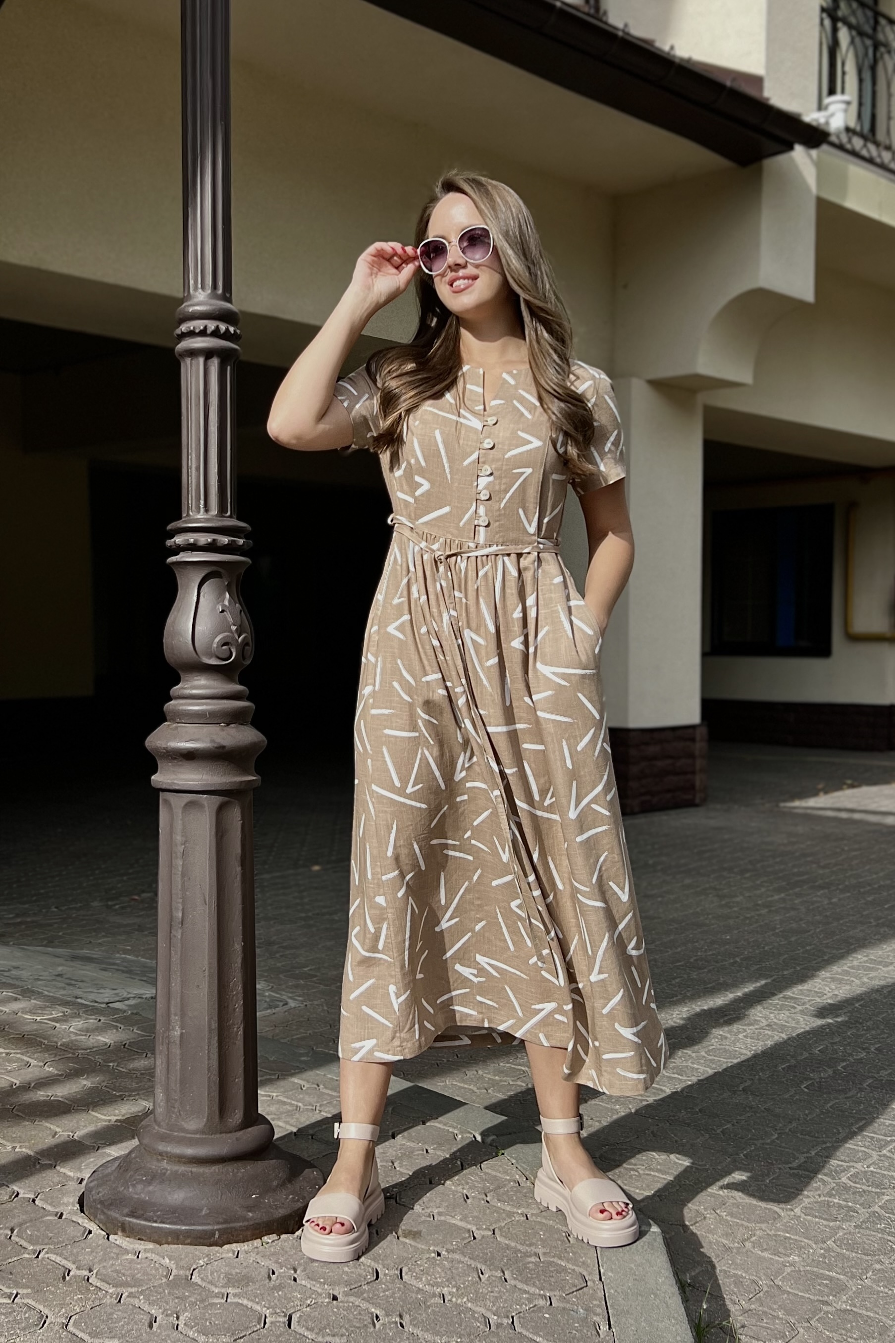 Льняное платье с коротким рукавом. Натуральная ткань обеспечит комфорт и всегда будет подчеркивать достоинство Вашего гардероба. Благодаря завязкам модель может выглядеть абсолютно по-разному, меняя силуэт от приталенного до свободного, что позволяет носить данную модель и в период беременности и после.