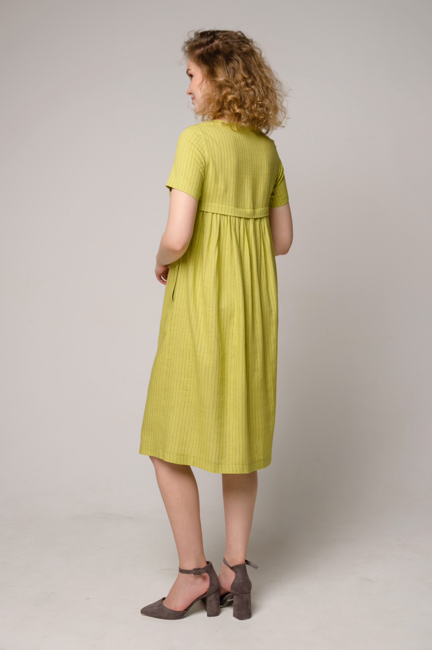 Элегантная базовая модель прямого силуэта из натуральной ткани. Благодаря диагональным вытачкам на груди платье идеально сидит на фигуре. Удобные карманы незаметно расположены в боковых швах. Свободный крой, благодаря кокетке и сборке на спинке не будут сковывать движения и позволит чувствовать себя легко и свободно.