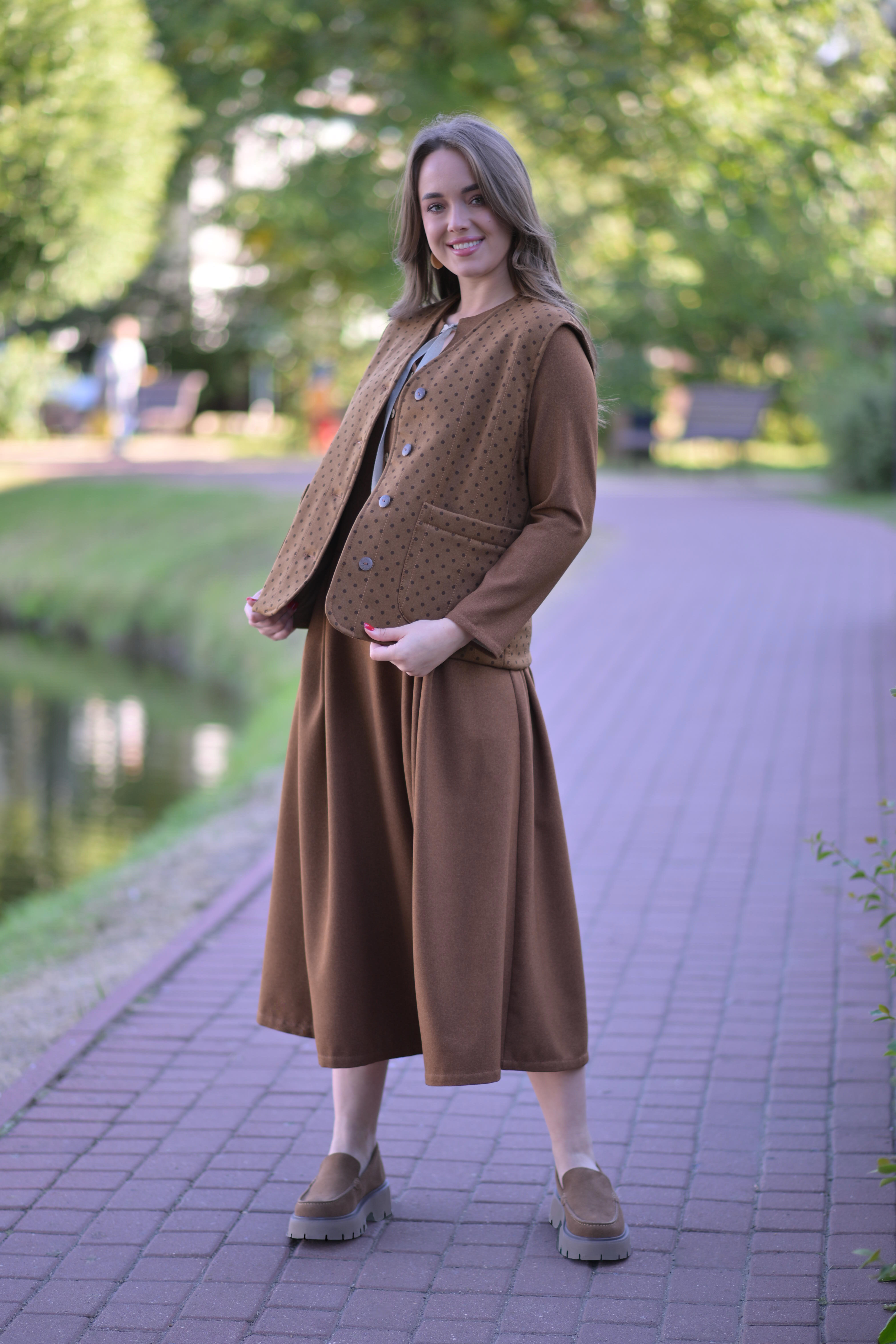 Это платье без сомнения будет уместно как на работе так и  на торжественном мероприятии, в храме или на семейных прогулках. Его утончённый силуэт, натуральный состав и продуманные детали подчеркнут особенный вкус и внимание к качеству.