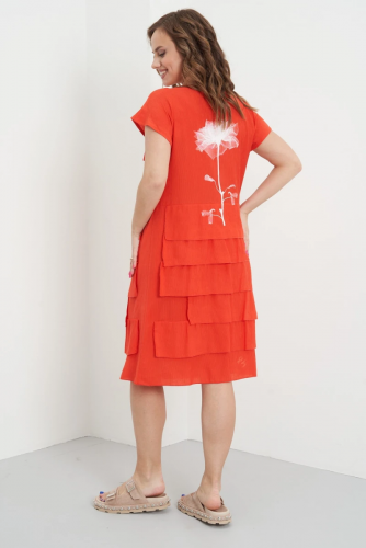 Любимой одеждой всех девушек в летний сезон всегда были и будут платья. Они покоряют своей непринужденностью и универсальностью. Романтичное и загадочное, элегантное и женственное - это платье подойдет не только для повседневной носки, но также и для свидания и вечеринки. Ставка - на многослойность и свободный крой: это сделало его максимально удобным, женственным и оригинальным, а необычный принт на спинке - неповторимым. Цельнокроенный короткий рукав с ластовицей, удобной А-силуэт, комфортная длина, это платье просто обязано занять свое место в вашем гардеробе.Длина рукава с плечом около 20 см.Длина изделия около 127 см.