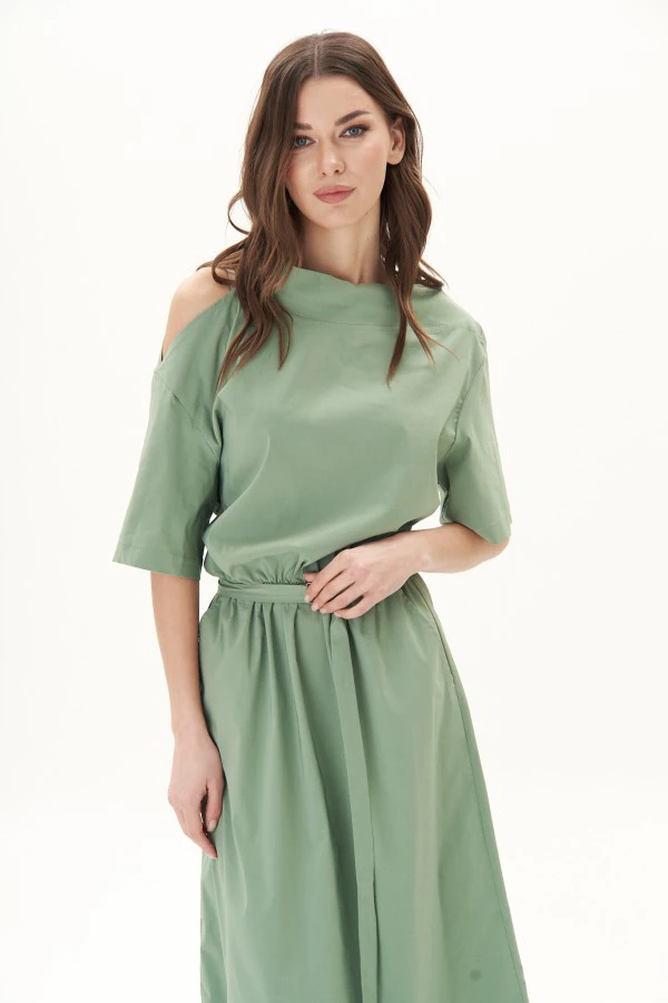 Весенний сезон всегда знаменуется обновлением гардероба, обязательным наличием в котором будут, конечно же, платья! Стильное и лаконичное миди! Эта универсальная модель станет отличным базовым предметом вашего гардероба.Свободный А-образный силуэт, рубашечный покрой, ассиметричная горловина, изысканный открытый участок плеча, эластичная тесьма по линии талии, съёмный пояс на полукольцах.Длина платья около 107 см, длина рукава около 30 см.