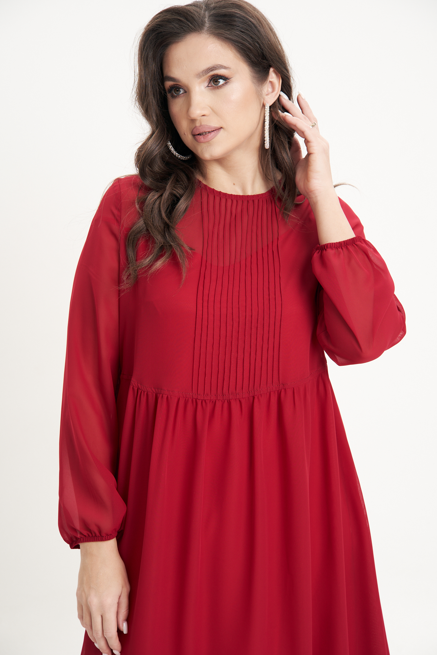 Современная мода диктует новые правила: платья из шифона плавно из нарядных перешли в наш повседневный гардероб. Прогулка летним вечером и в не жаркий день в такой одежде - одно удовольствие, лёгкое, струящееся полотно изящно создает ощущение воздушности. Свободный, упрямлённый силуэт, втачной покрой, отрезной лиф, чуть выше линии талии.Нижняя часть платья - коническая со сборкой. По низу платья - притачной волан. Спинка со средним швом и застёжкой.Рукав с манжетой и сборкой. Нижнее платье из подкладочной вискозы, А-силуэта, на регулирующихся бретелях.Длина платья около 117 см. Длина рукава около 60 см.Длина нижнего платья около 102 см.