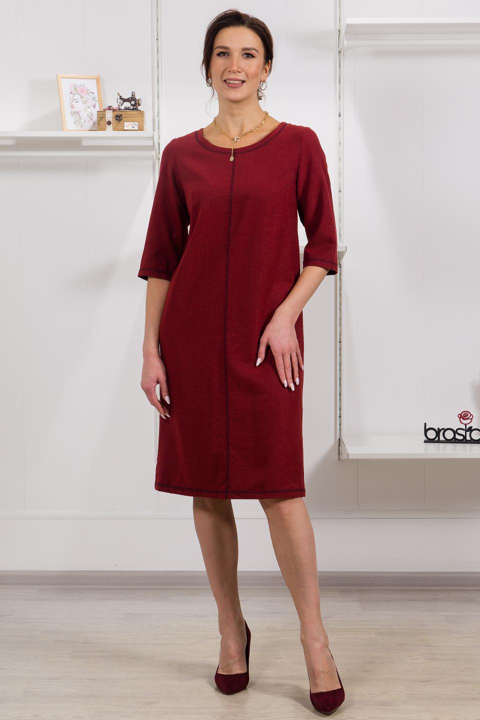 Описание: Классическое базовое платье на все случаи жизни. Комфортная посадка за счет прямого силуэта. Круглая горловина умеренно открывает шею. Удобный рукав прикрывает локоть. Декоративная строчка зрительно удлиняет фигуру, согласуясь с отделкой по горловине и низу.