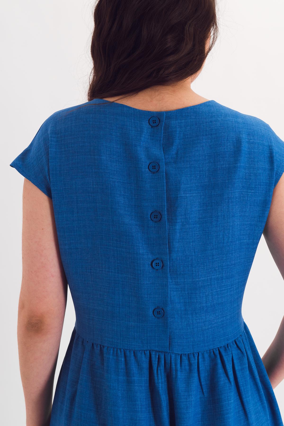 Описание: Летящее платье со спущенным плечом свободно садится на фигуру и дает легкость в лентний зной.
