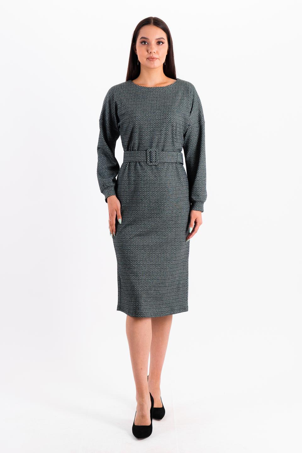 Описание: Модное платье длины миди украсит ваш гардероб. Пояс подчеркнет талию, а умеренно объемный рукав с манжетой - не оставят Вас без внимания окружающих!