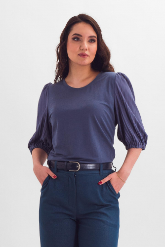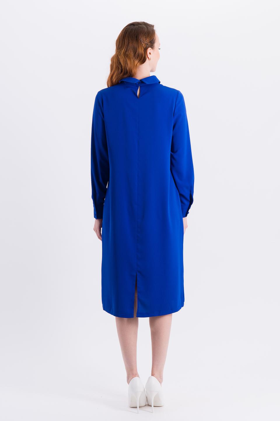 Описание: Слегка расклешенное платье притягивает взгляды необычными элементами- застроченные складки по кокетке и центру рукава прекрасно гармонируют с компактным воротничком на стойке и декоративным галстуком-бантом.
