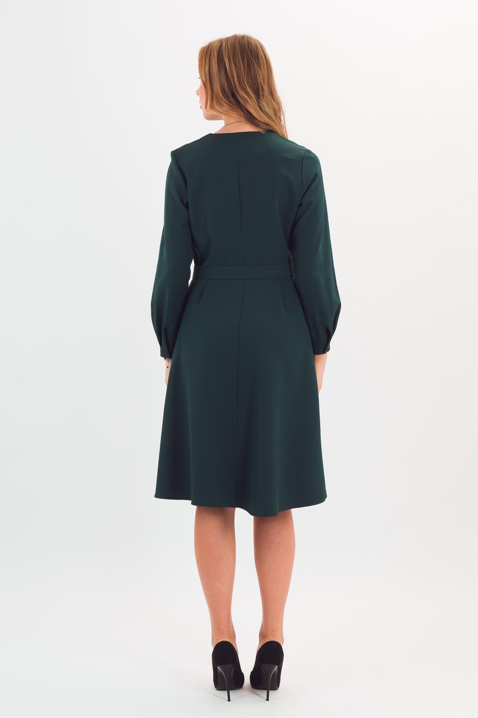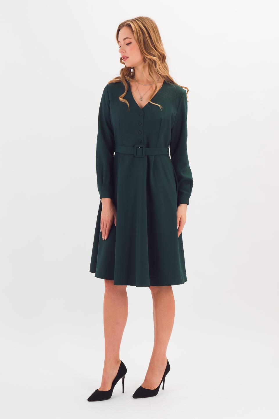 Описание: Романтичное платье с отрезной юбкой прекрасно садится по фигуре. V-образный вырез деликатно приоткрывает зону декольте. Длинный рукав на манжете регулируется по объёму пуговкой.