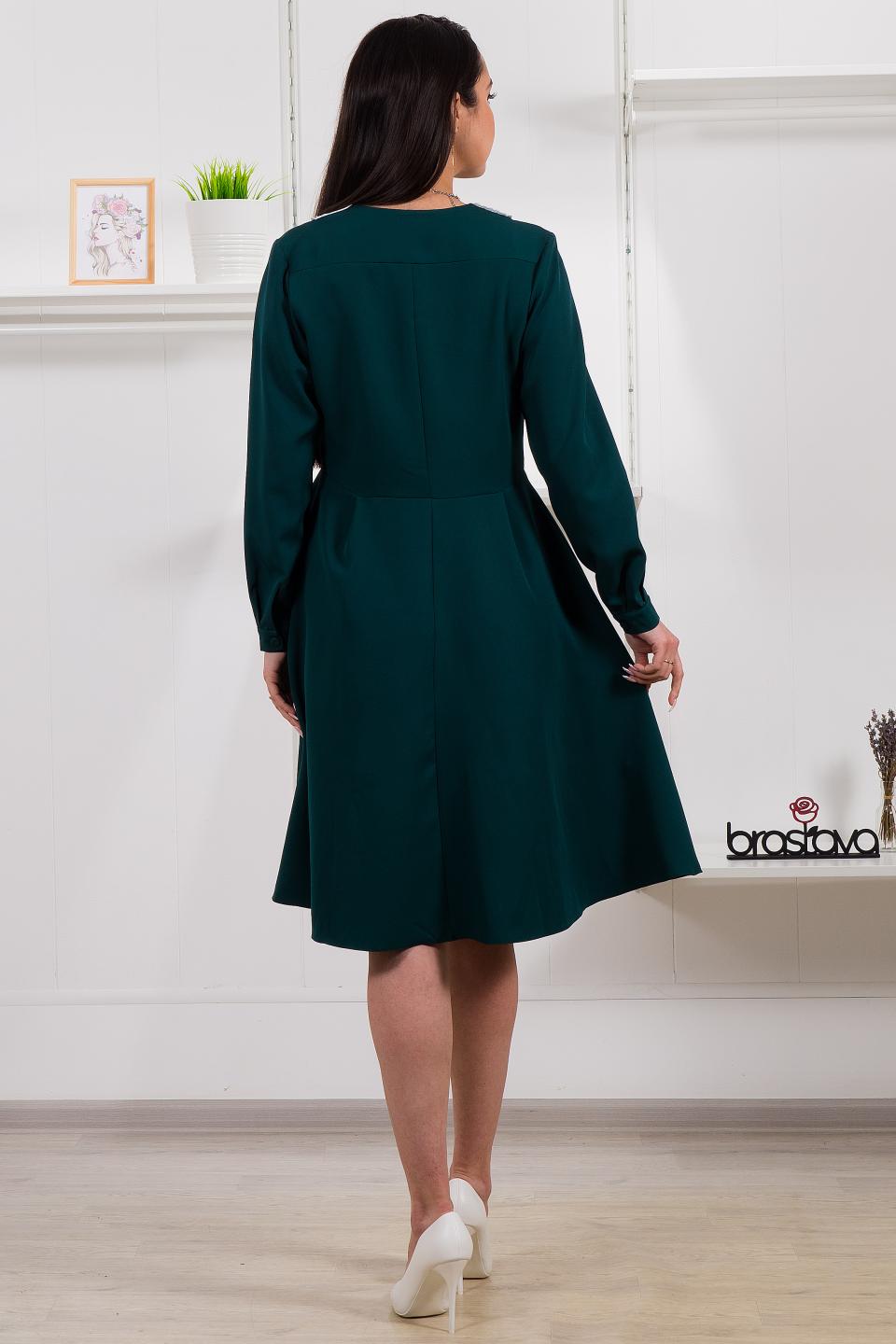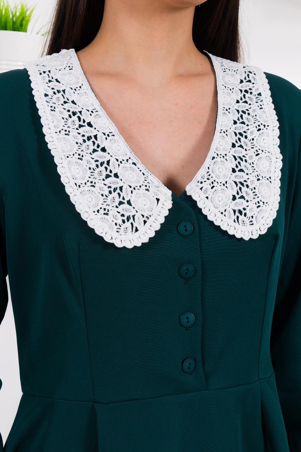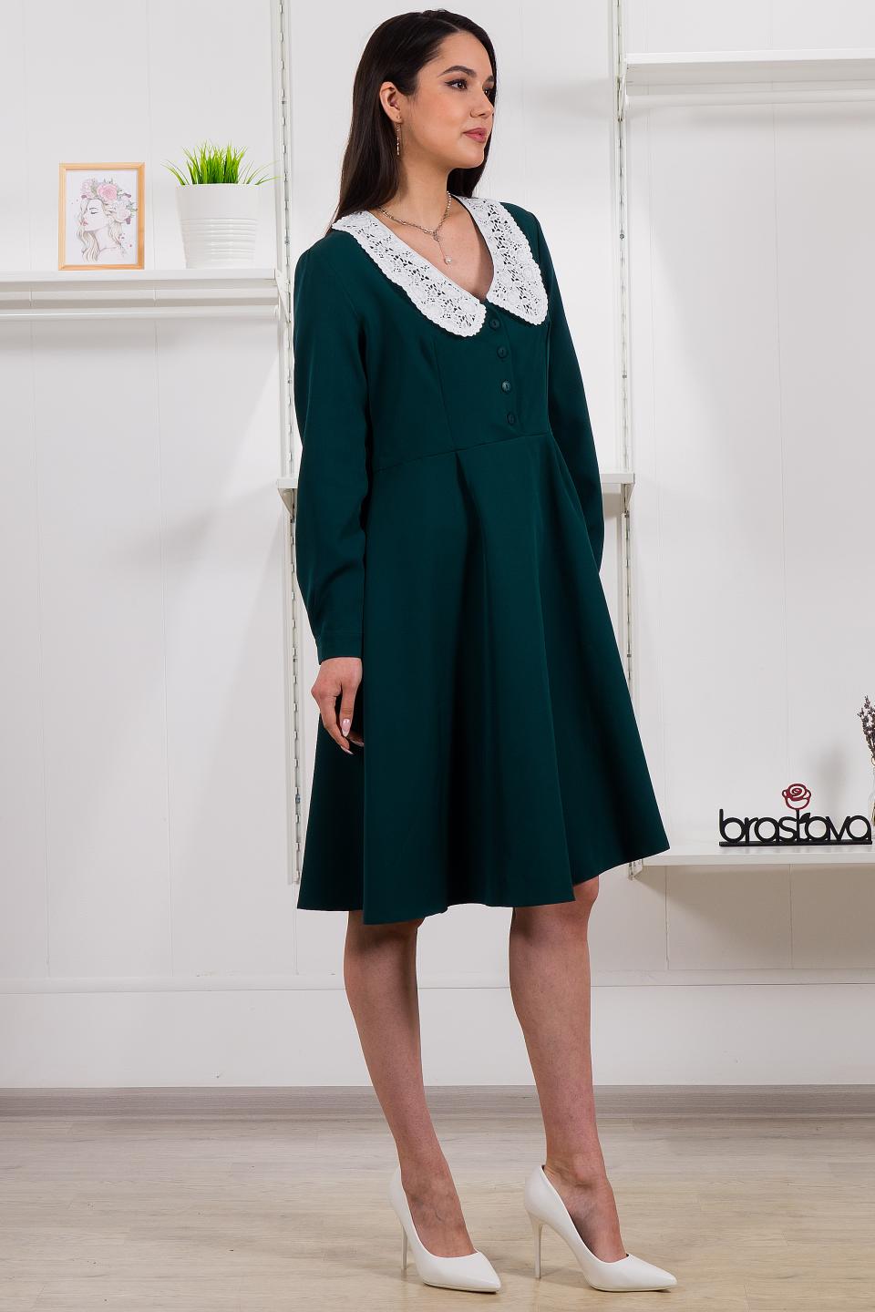Описание: Романтичное платье с отрезной юбкой прекрасно садится по фигуре. V-образный вырез деликатно приоткрывает зону декольте. Длинный рукав на манжете регулируется по объёму пуговкой. Акцентный кружевной воротник придает нежность образу.