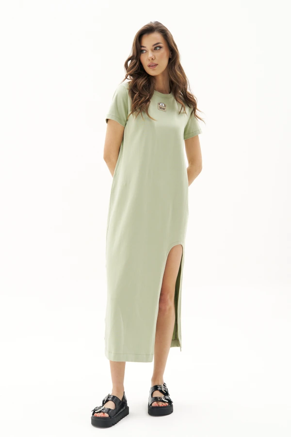 Один из самых комфортных, расслабленных и неформальных видов платьев - платье-футболка.Они легко интегрируются в повседневный кэжуал и подходят практически всем. Свободный, упрямлённый силуэт, втачной покрой, длинна миди, короткий комфортный рукав и изюминка, вносящая дисбаланс в эти простые формы - это нехарактерный, ассиметричный вырез-арка по переду платья.Длина платья около 117см.Длина рукава около 24 см.