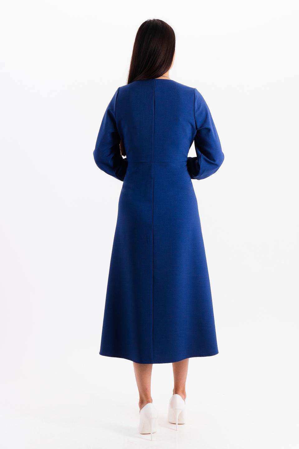 Описание: Женственное платье с имитацией запаха и расклешенной юбкой миди комфортно садится по фигуре за счет складок по лифу и переведенного вперёд плечевого шва. Длинный и широкий рукав со складками и манжетами на пуговицах позволяет регулировать объем. Модель подойдет для любого случая, будь то офис, школа, деловая или неформальная встреча.