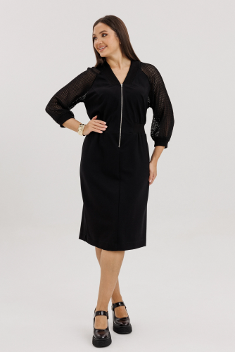 Идеальный способ выглядеть стильно и лаконично выбрать трикотажное платье.Оно действительно универсально: однотонная модель с аккуратными рукавами, как нельзя лучше подойдёт, как для гардероба, так и для формальных встреч.Полуприлегающий силуэт, покрой - реглан, -образный вырез, застёжка центральная, частичная на тесьму-молнию.Полочка с нагрудными вытачками и центральным швом. Рукав из отделочной ткани. Линию талии подчёркивает трикотажное эластичное полотно в тон основной ткани, повышенной эластичности. Этим же отделочным полотном обработана горловина и манжета рукавов. Длина платья около 107 см.Длина рукава около 60 см.
