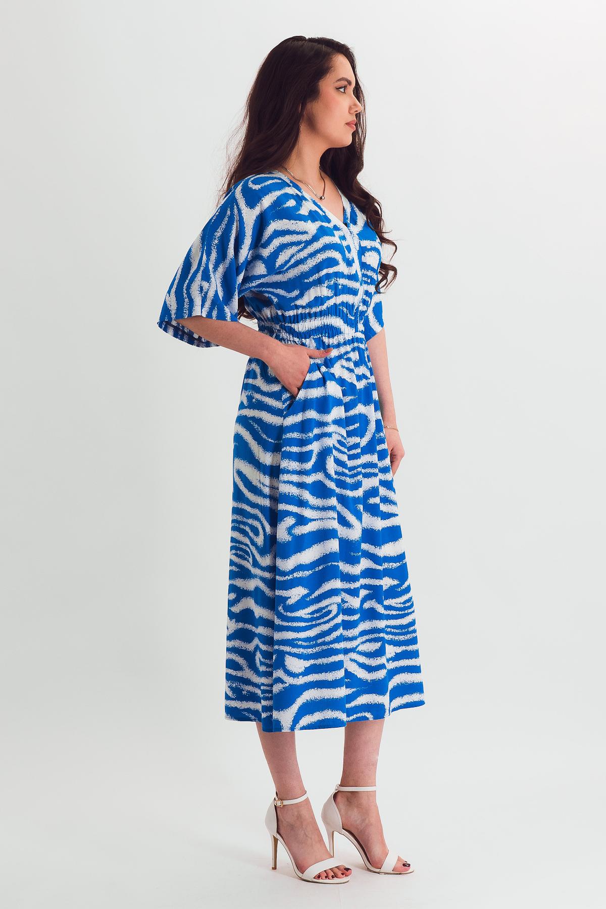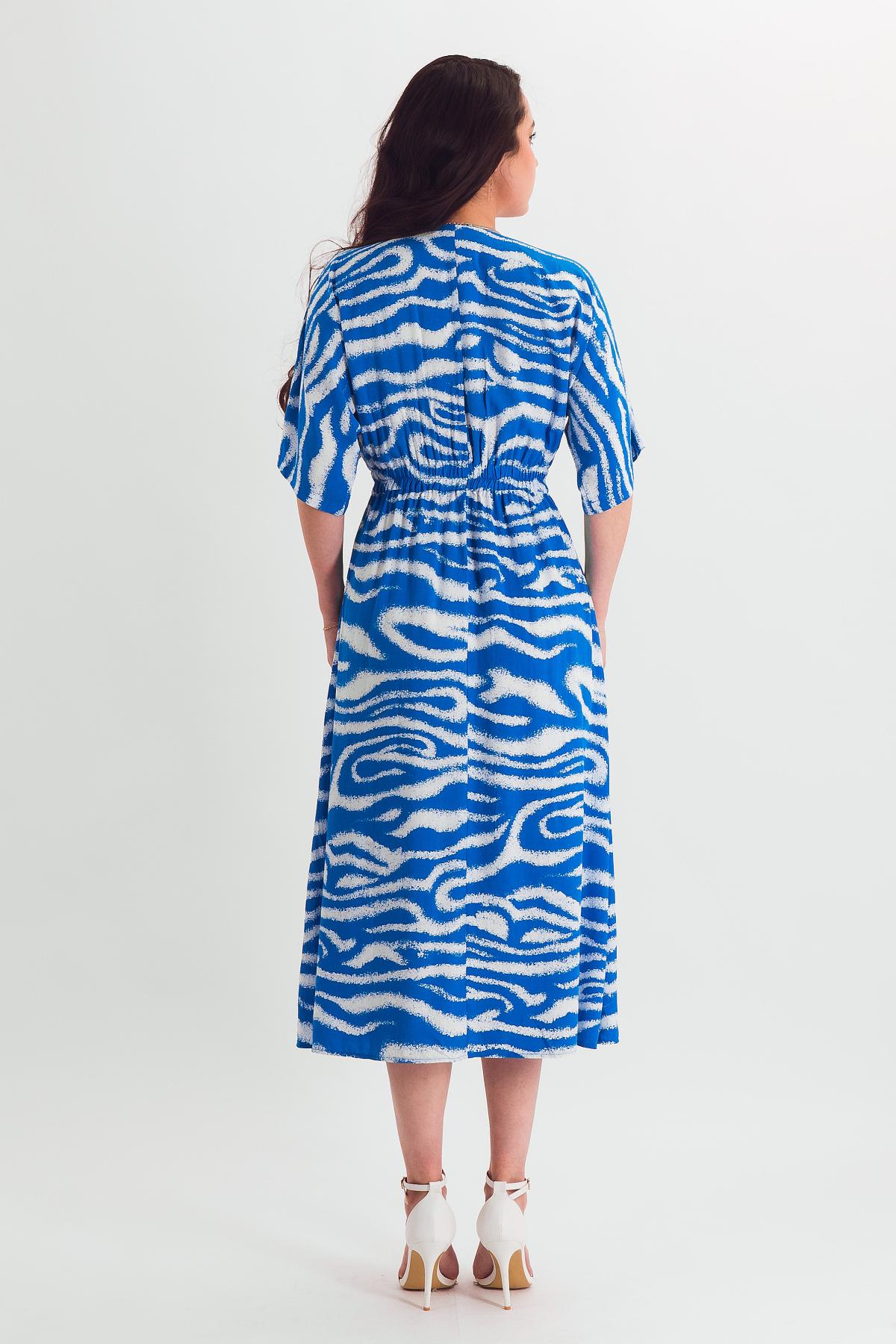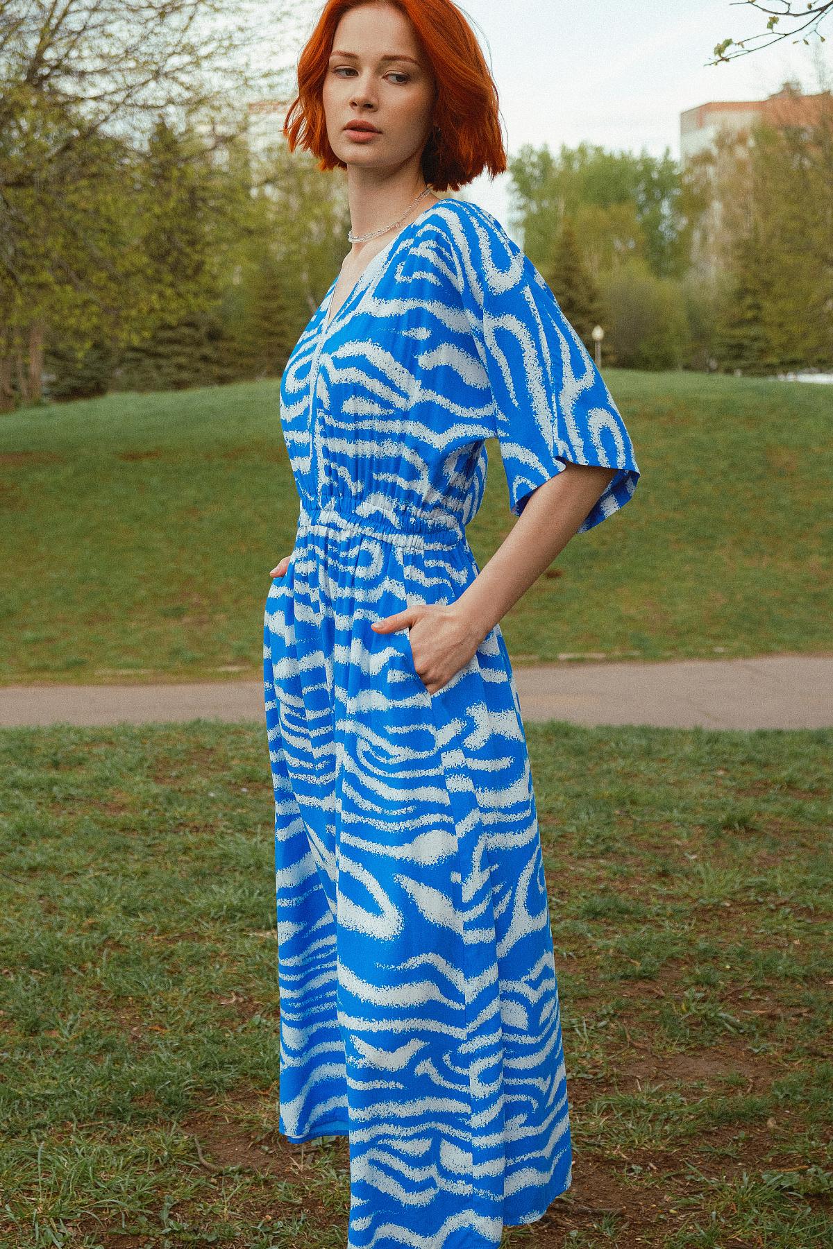 Описание: Воздушное платье французской длины с цельновыкроенным рукавом из нежнейшего штапеля дарит комфорт в летнюю жару. Широкая резинка в поясе и карманы в бочках обеспечивают удобство и функциональность модели. V-образный вырез зрительно удлиняет шею, приоткрывая зону декольте.