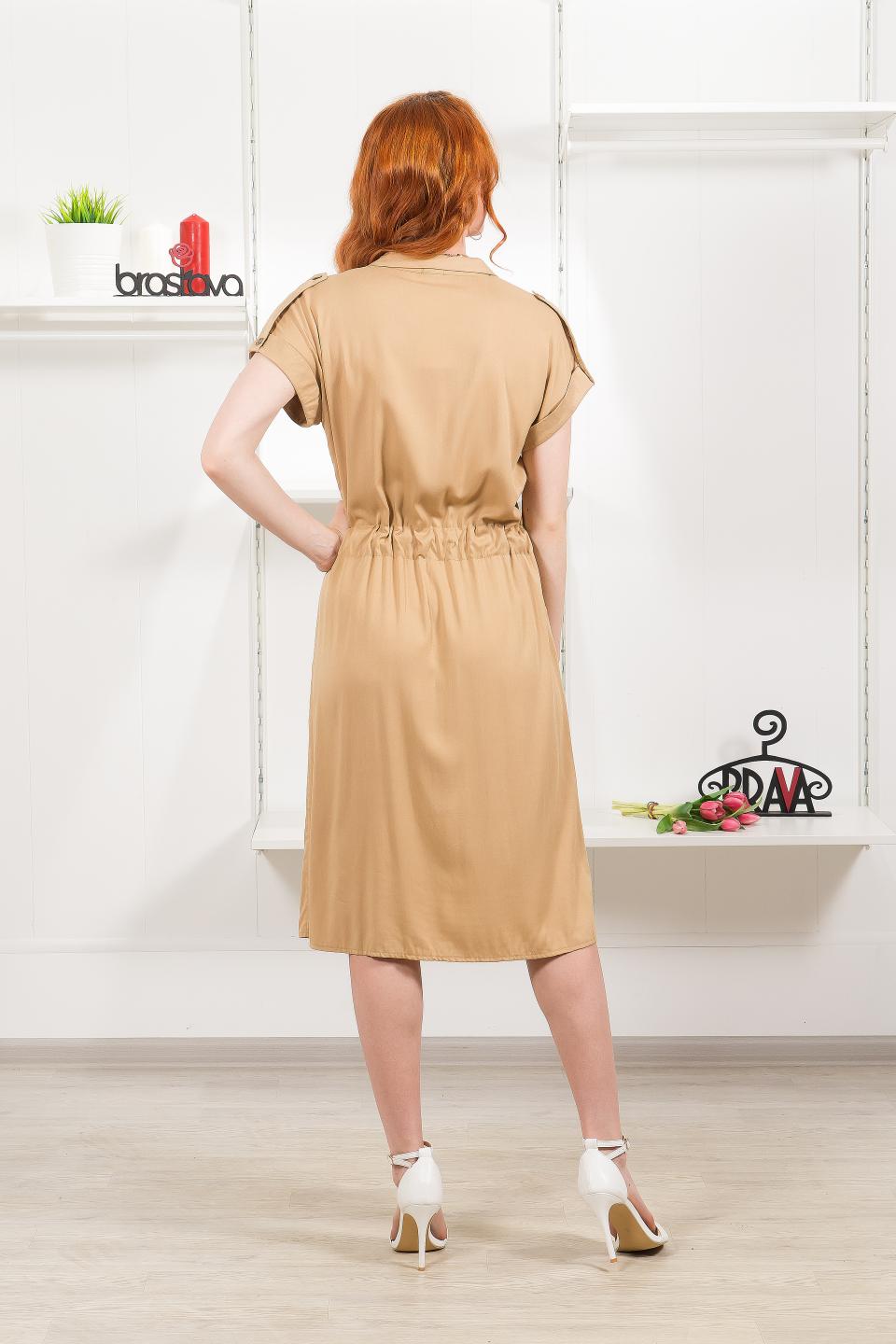 Описание: Легкое платье-рубашка из плотного штапеля станет нахадкой для Вашего летнего гардероба! Спущенное плечо украшено погончиками, английский воротник зрительно вытягивает зону декольте, пояс в кулиске по талии позволит регулировать необходимый объём, а накладные карманы-портфели позволят иметь под рукой необходимые мелочи.