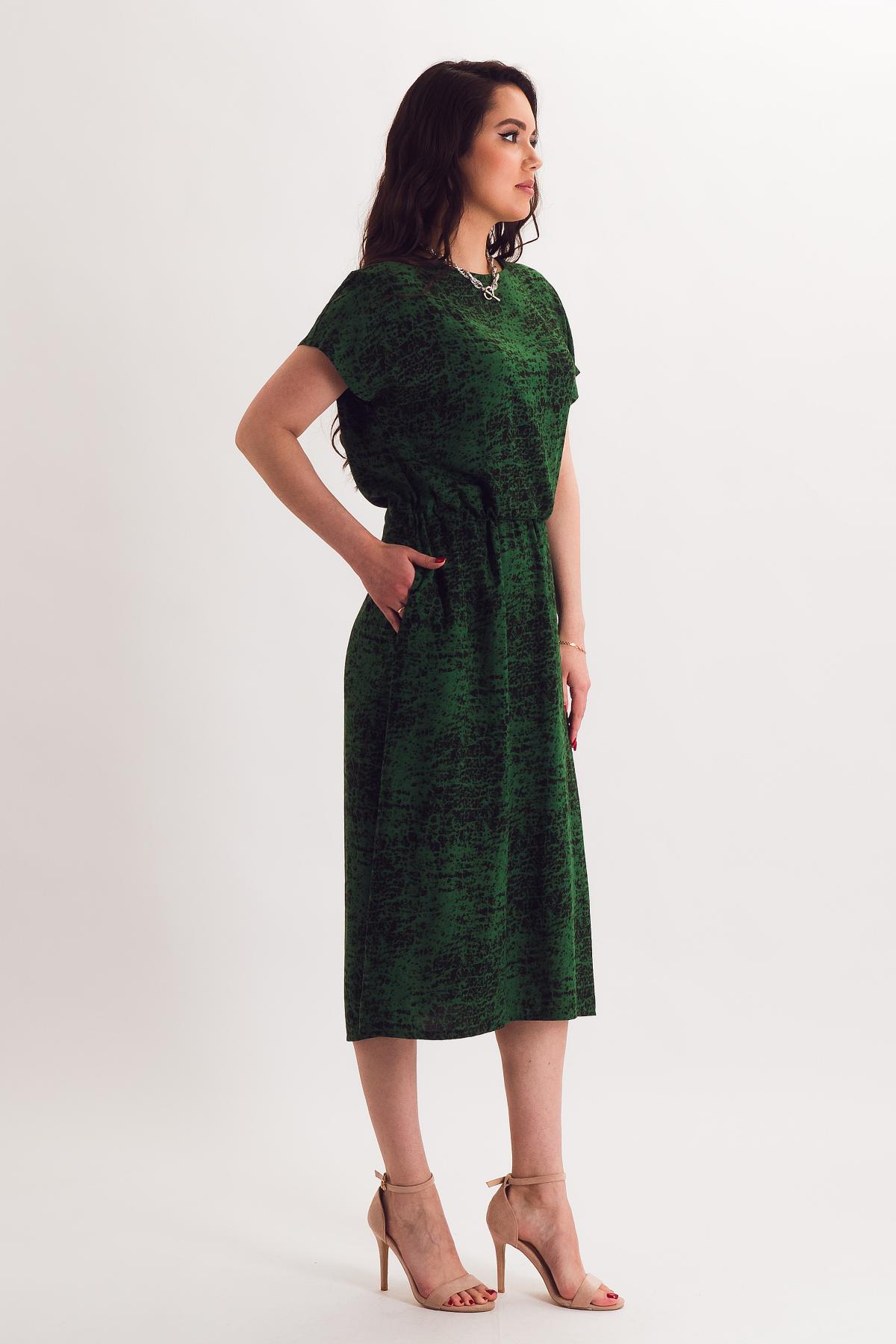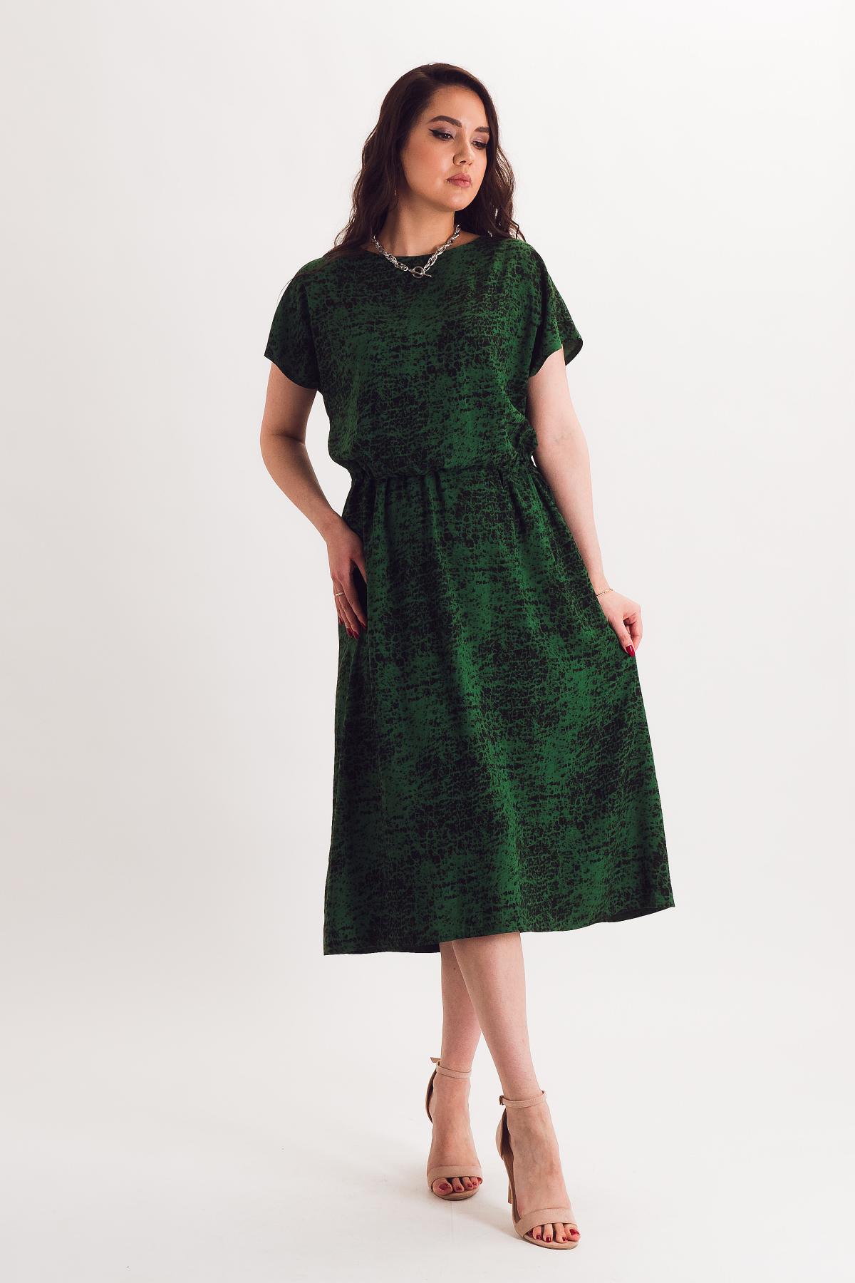 Описание: Сегодня Вы выбираете, какой силуэт будет у данной модели - кулиска в талии позволяет регулировать объем. Эффектная длина зрительно вытягивает фигуру, а спущенное плечо не сковывает движений! Необычный инверсный принт создает имитацию тканей-компаньонов.