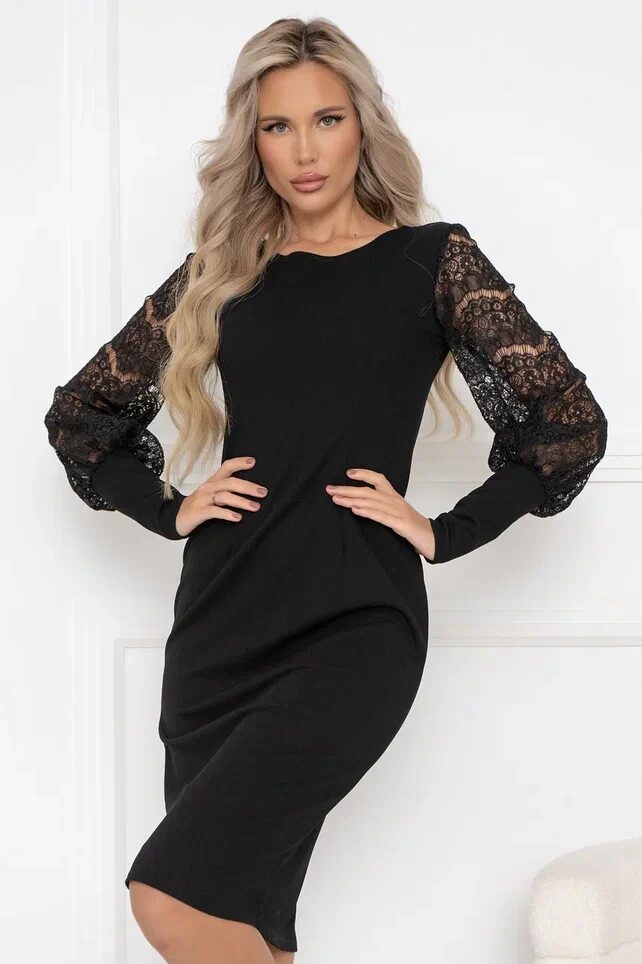 Черное вечернее платье с рукавами из гипюра представляет собой элегантное и роскошное изделие. Гипюровые рукава добавляют платью особый шарм и женственность, подчеркивая изысканность и утонченность его обладательницы. Такое платье станет идеальным выбором для особых случаев, таких как свадьбы, выпускные вечера или светские мероприятия.