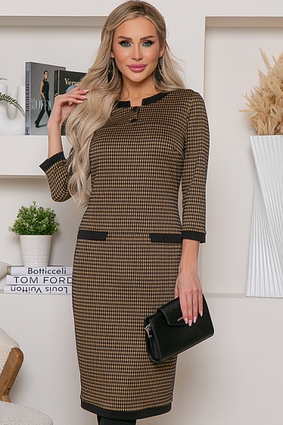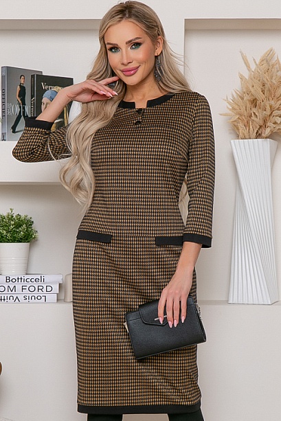 Платье из жаккардового трикотажного полотна с контрастной  отделкой.