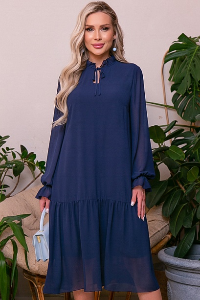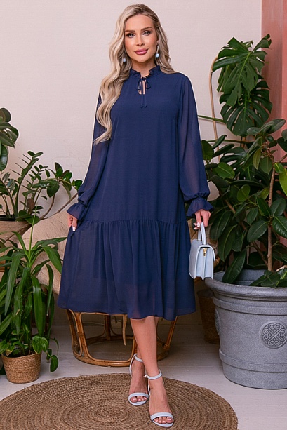 Платье А-образного силуэта с притачной оборкой по низу из шифона на трикотажном подкладе.