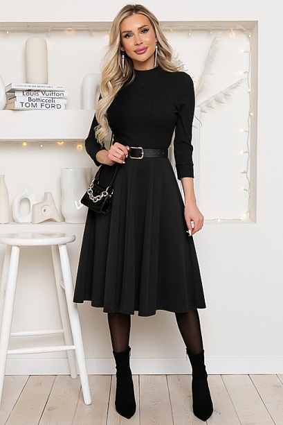 Комбинированное платье из трикотажа лапша,отрезное по линии талии с расклешенной юбкой из плотного трикотажного полотна джерси.Ремень в комплект не входит.