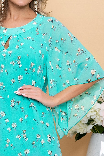 Платье из шифона на трикотажном подкладе свободного  А-образного силуэта.Рукав реглан расширенный к низу.Ремень в комплект не входит.
