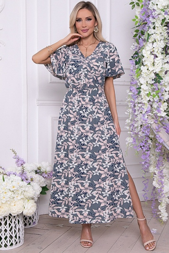 * Платье из вискозной костюмной ткани полуприлегающего силуэта с V- вырезом горловины.В среднем шве спинки застежка молния.По переду юбки имитация запаха с декоративными складками.