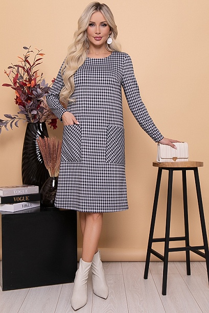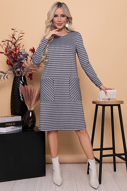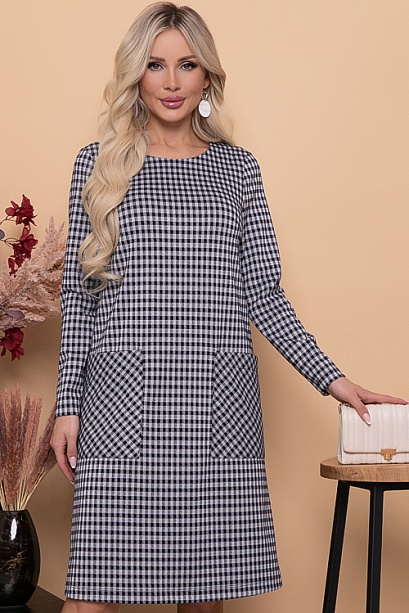 Платье из трикотажного полотна в клетку с накладными карманами.