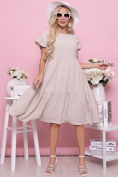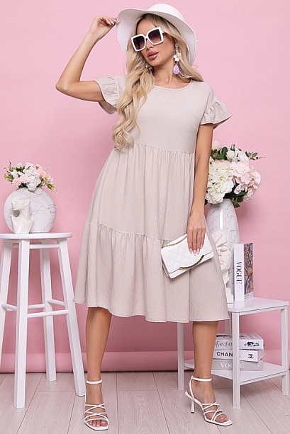 Платье из текстильного полотна свободного  А-образного силуэта с двумя ярусами оборок.