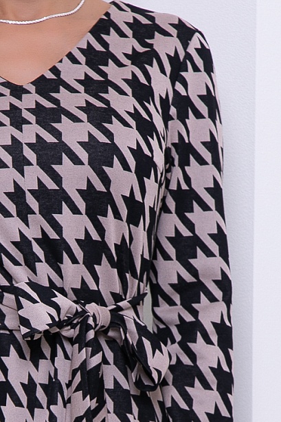 Платье из жаккардового трикотажного полотна в гусиную лапку с поясом в комплекте.
