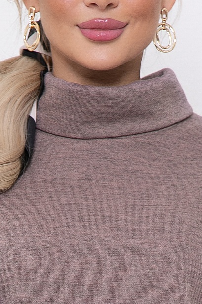 * Платье из мягкого эластичного трикотажного полотна.Лиф платья свободного силуэта,с цельнокроеными рукавами на манжете и воротником "хомут".Юбка прямая,слегка зауженная к низу,по спинке со шлицей.По талии платье зафиксировано на резину.Из верхней части платья формируется глубокий свободный напуск.