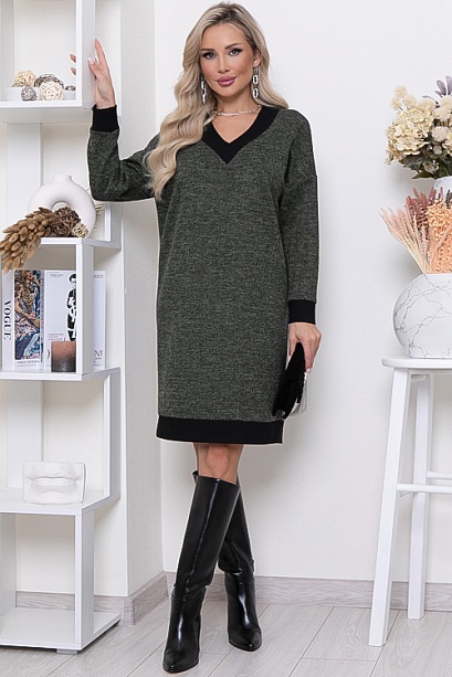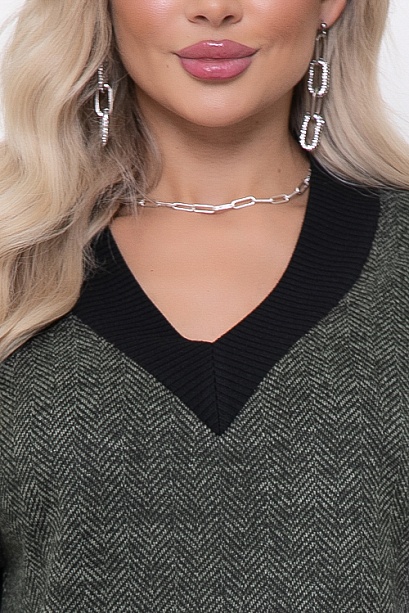* Теплое, комфортное платье из трикотажного полотна в елочку с V-вырезом горловины и отделкой трикотажной рибаной. Ремень в комплект не входит.