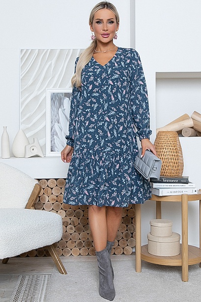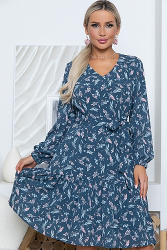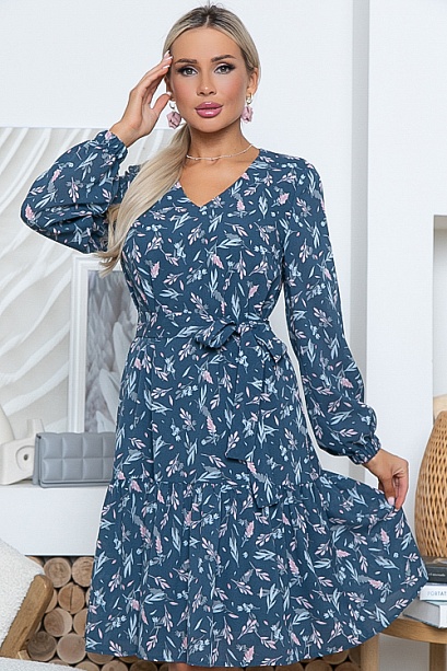 Платье свободного А-образного силуэта из креп шифона с притачным воланом по низу, на трикотажном подкладе.В комплекте пояс из основной ткани.Ремень в комплект не входит.Изделие можно носить как с поясом ,так и без.