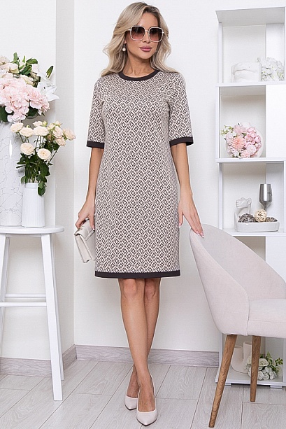 * Платье из жаккардового трикотажного полотна свободного силуэта с контрастной отделкой.