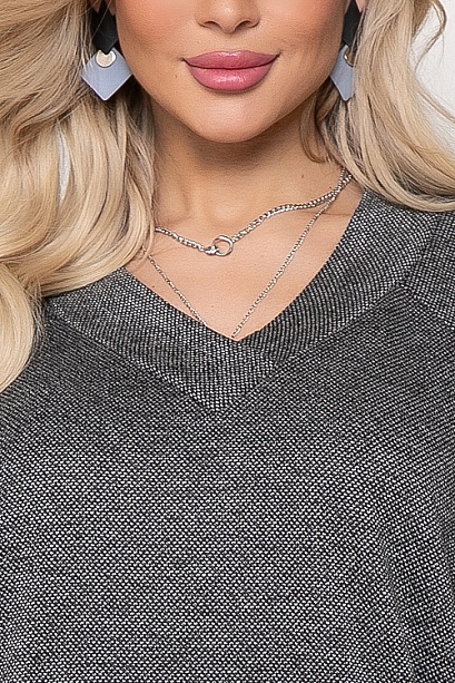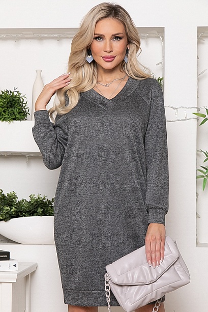 Платье из комфортного  трикотажного полотна под твид свободного силуэта,с V вырезом горловины и притачным манжетом по низу.