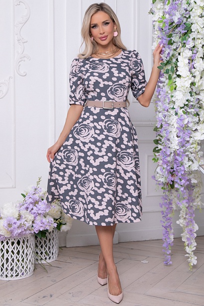 Платье из трикотажного полотна,отрезное по линии талии, с расклешенной юбкой,с удобными карманами в боковых швах.Пояс из основной ткани в комплекте.Ремень в комплект не входит.