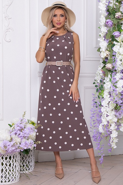 Платье из текстильного полотна А-образного силуэта.Горловина круглая с застежкой  среднем шве спинки на петлю и пуговицу.Перед платья с мягкими защипами от горловины.Платье можно носить в двух вариантах, как трапецию,а можно приталить ремнем.Ремень в комплект не входит.