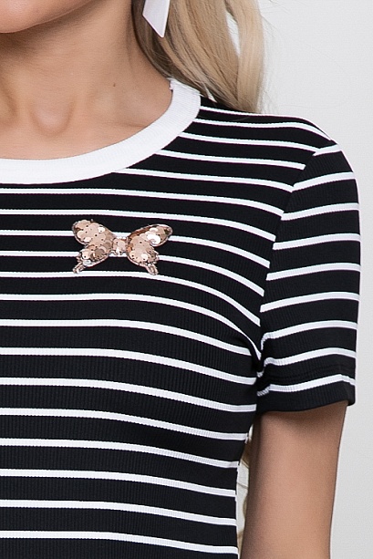 Платье  из трикотажного полотна рибана в полоску(мелкая лапша производство Турция) свободного силуэта.Горловина  оформлена трикотажной рибаной.По полочке декоративный элемент.