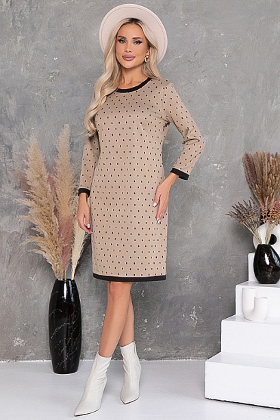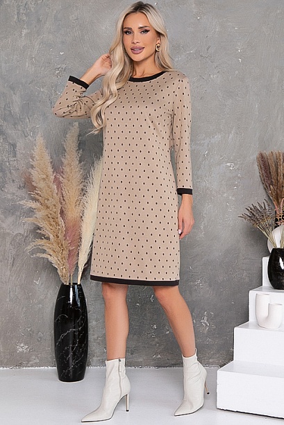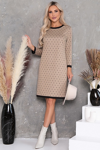 Платье из жаккардового трикотажного полотна  прямого силуэта с контрастной отделкой.