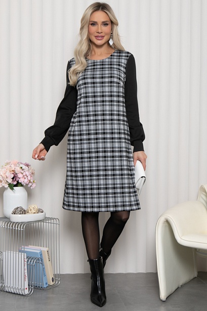 * Комбинированное платье из трикотажного полотна в клетку и трикотажа джерси.