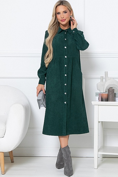 * Платье из микровельвета свободного силуэта.По переду центральная застежка на пуговицы до низа и функциональные карманы.Воротник отложной на стойке.