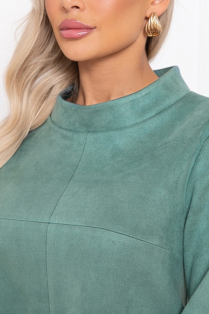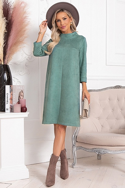 * Платье А-образного силуэта из экозамши. По переду декоративные линии с отстрочкой, и функциональные карманы. Воротник стойка.
