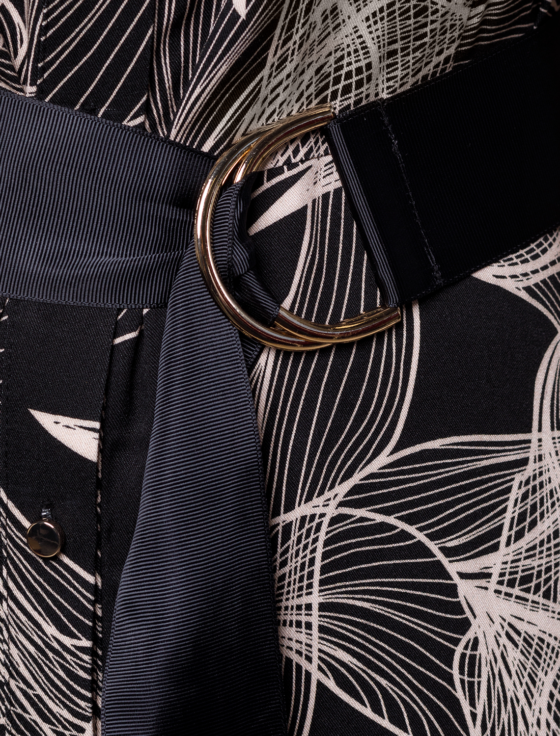 Платье А-силуэта с отложным воротником как у рубашки выполнено из премиальной вискозы. Модель с графичным растительным принтом дополнена удобными боковыми карманами и поясом из репсовой ленты. Застежка на золотистые пуговицы во всю длину изделия позволяем создать спереди нужный разрез. Материал – очень приятен к телу именно в осеннее время за счет его особенного плетения создает уютный обволакивающий эффект и в тоже время не теряет своей легкости.