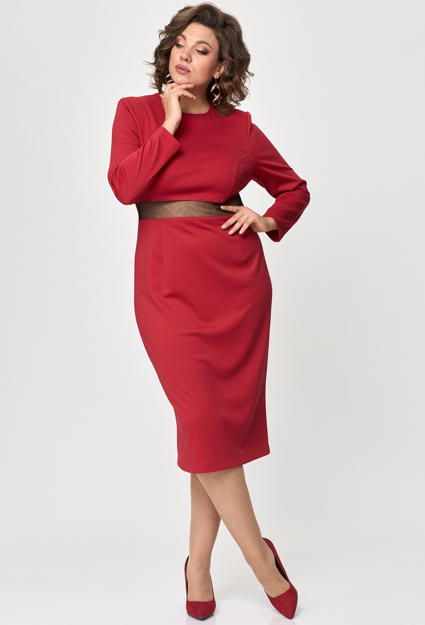 Модель: Анастасия Мак 1128 красный ..показатьi>Рост: 164 см (девушка на фото ростом 170 см) Сезон: Круглогодичный Тип ткани: 73% ПЭ, 23% вискоза, 4% спандексПлатье прилегающего силуэта, длиной за колено выполнено из плотного однотонного трикотажного полотна, в качестве отделки использовано трикотажное полотно “сетка“. _x000D_
