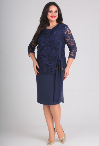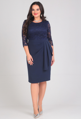 Модель: Анастасия Мак 567 синий Р..показатьост: 170 см (девушка на фото ростом 170см) Сезон: всесезонный Тип ткани: полиэстер 60%, вискоза 35%, лайкра 5%.Гипюр – полиэстер 94%, спандекс 6%Платье полуприлегающего силуэта, длиной слегка за колено, выполнено из однотонной ткани и трикотажного полотна "гипюр". Платье двухслойное. Полочка платья - нижняя часть с нагрудными и талиевыми вытачками. Верхняя часть полочки отрезная, выполнена из гипюра. Спинка платья - нижняя часть с талиевыми вытачками, средним швом, в нижней части которого обработан разрез, верхняя часть спинки цельная из гипюра. Рукав втачной, одношовный, длиной 3/4. Низ верхней части полочки и спинки с фистонами из кружева. Платье на плечиках и с застёжкой на потайную молнию в левом боковом шве.