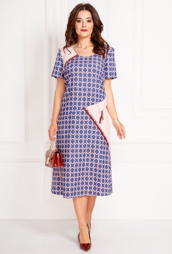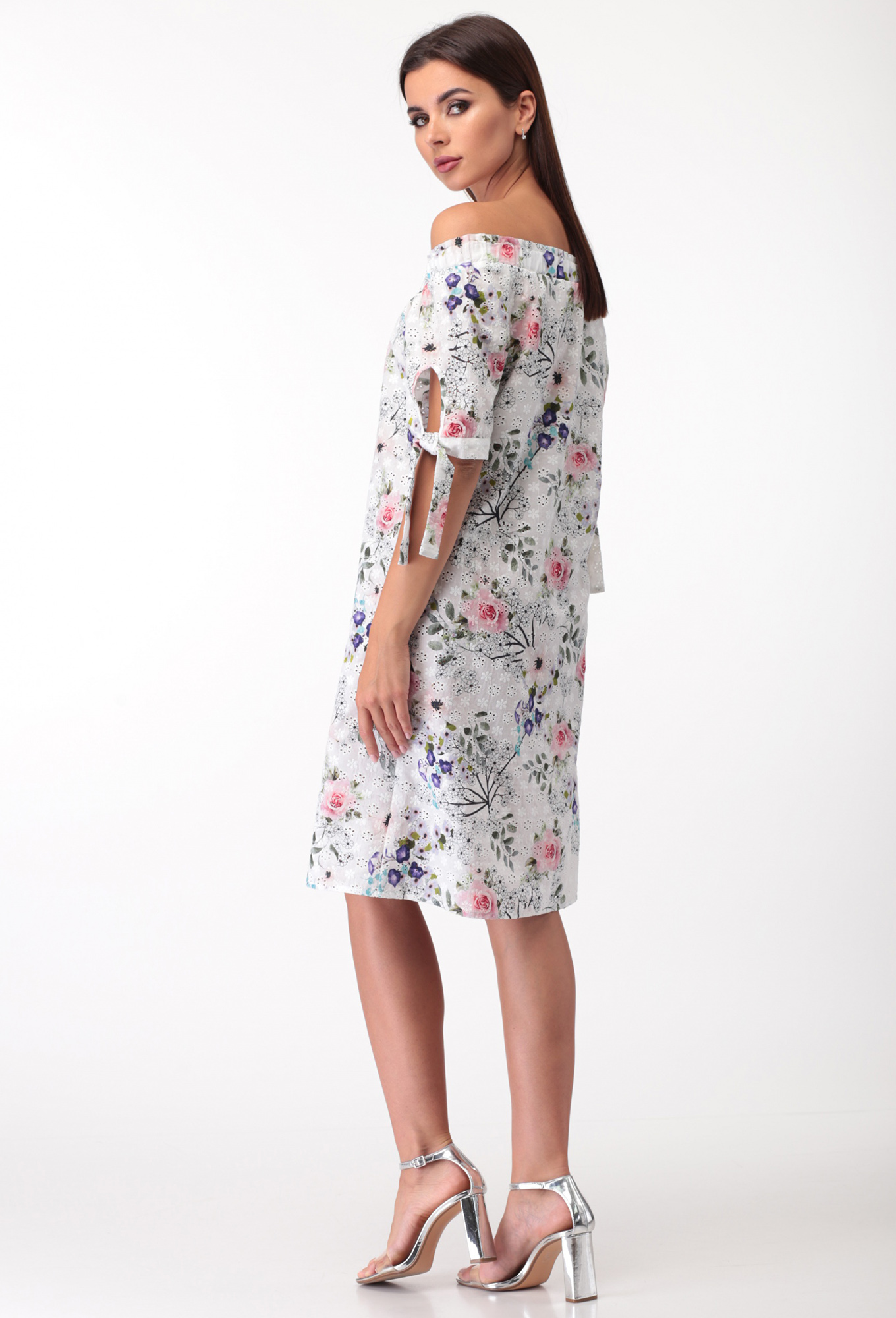 Модель: Анастасия Мак 726 белый Р..показатьост: 164см (рост модели на фото 170см) Сезон: весна-лето Тип ткани: 100% хлопокПлатье выполнено из однотонной светлой ткани, в качестве отделки использована ткань более темного оттенка с элементами вышивки цветными нитками. Платье слегка А-силуэта, длиной за колено. Полочка платья по центру на притачной планке с петлями и пуговицами. Горловина круглой формы. Правая часть полки в верхней части с нагрудной вытачкой, горизонтальным подрезом ниже линии талии, нижней частью с вертикальным рельефом. По верхней правой части выполнена вышивка цветными нитками. Левая часть полочки в верхней части с отрезной кокеткой, в нижней части с вертикальным рельефом. Спинка со средним швом, в боковых швах от низа вверх обработаны разрезы. Рукав короткий, втачной, одношовный. Платье на плечиках. Низ платья полукруглой формы.ост: 164см (рост модели на фото 170см)