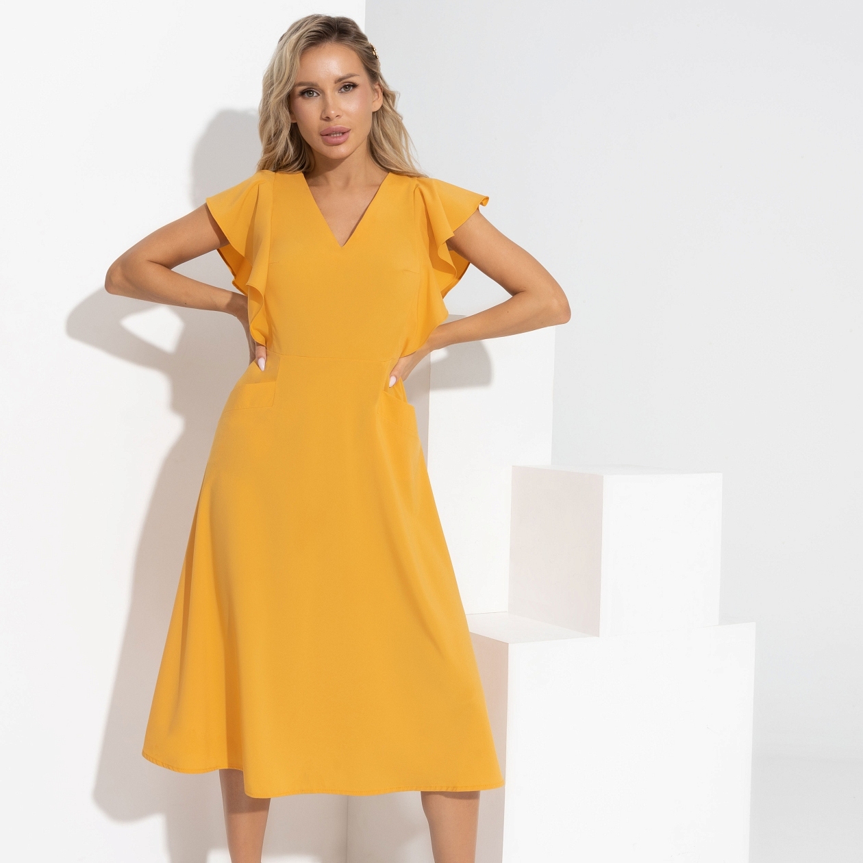 Детали, которые делают это платье уникальным, продуманы до мелочей. Озорные «крылышки» на плечах придают образу легкость и воздушность, а волнующее V-декольте добавляет нотку чувственности и элегантности. Этот дизайн идеально подходит для тех, кто хочет выделиться из толпы. Акцент на талии создает утонченный силуэт, подчеркивая ваши достоинства. Такое платье — это не просто вещь, это состояние души, которое вы захотите предложить своим клиентам, покупая оптом для своего бизнеса.
