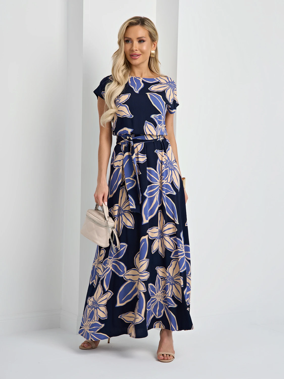 Платье длины макси с вырезом  лодочкой.