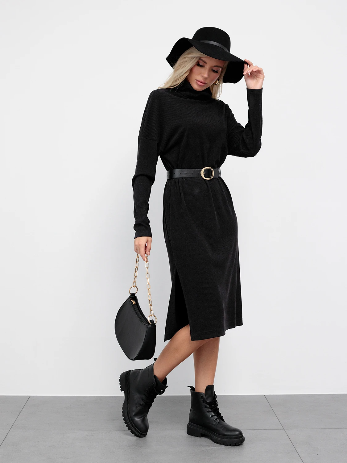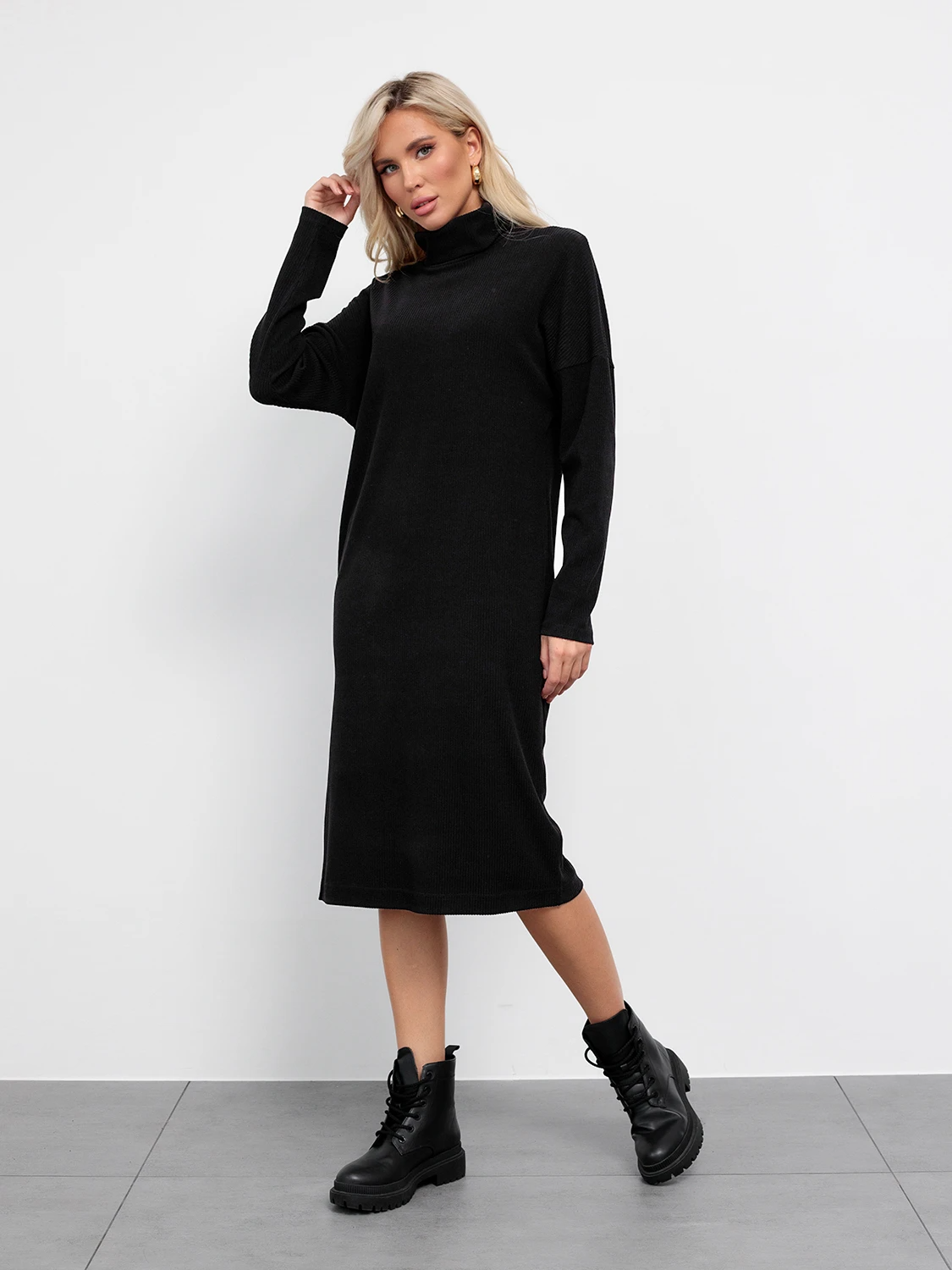Платье свободного силуэта длины миди.